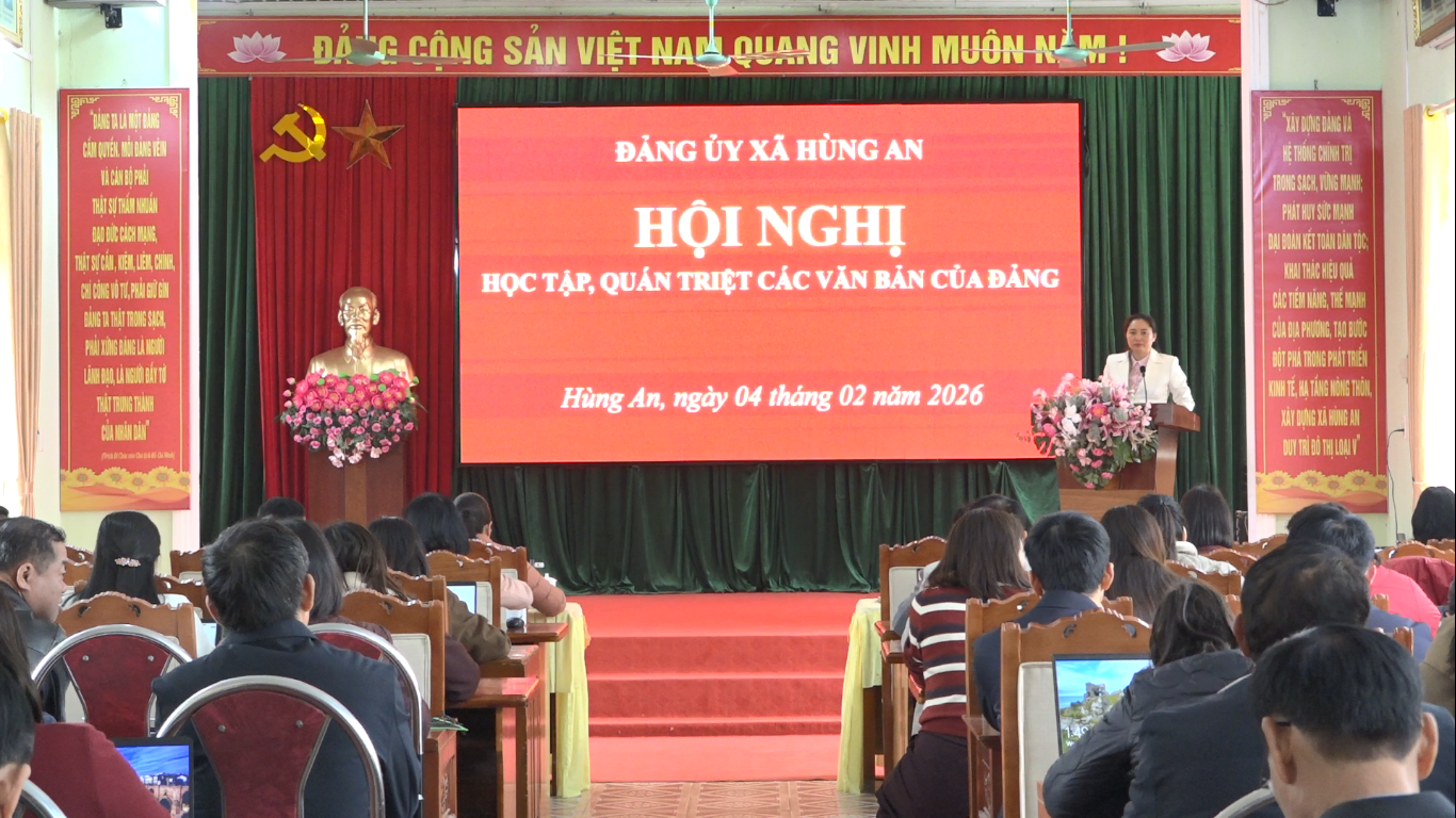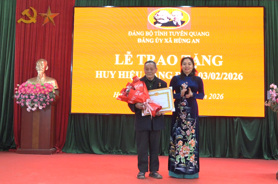Nhân kỷ niệm 96 năm Ngày thành lập Đảng Cộng sản Việt Nam (3/2/1930 - 3/2/2026), sáng 3/2, Đảng ủy xã Hùng An tổ chức lễ trao tặng huy hiệu Đảng đợt 3/2/2026. Dự có các đồng chí Nguyễn Thùy Linh, Bí thư Đảng ủy, Chủ tịch HĐND xã; Hoàng Thị Thu Hiền, Phó Bí thư Thường trực Đảng ủy; Nguyễn Xuân Hải, Phó Bí thư, Chủ tịch UBND xã; Thường trực HĐND, UBND, Ủy ban MTTQ; lãnh đạo các ban ngành, đoàn thể của xã; Bí thư các chi bộ trực thuộc xã.