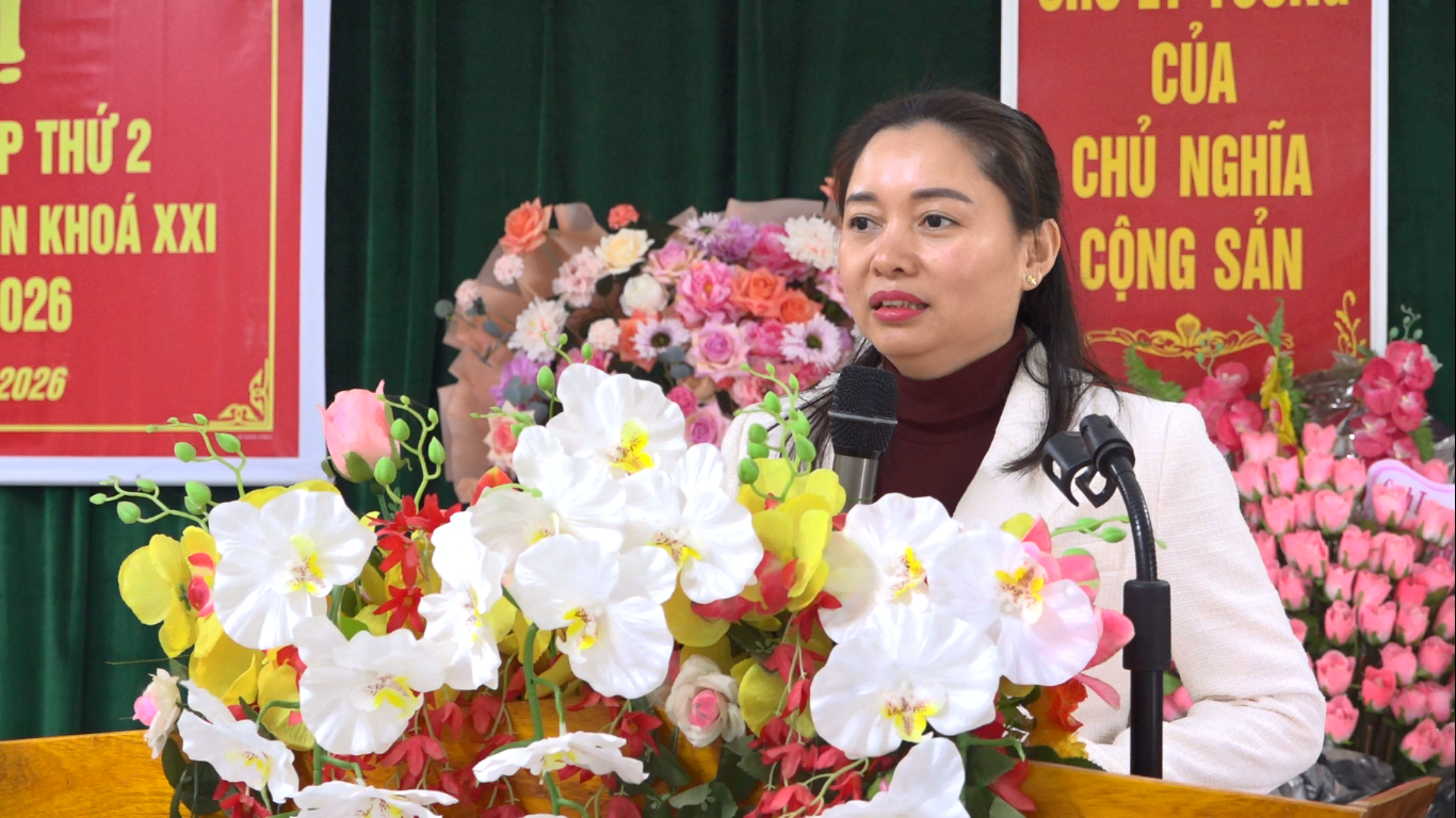 Bà Nguyễn Thùy Linh, Bí thư Đảng ủy, Chủ tịch HĐND xã trả lời ý kiến kiến nghị của cử tri