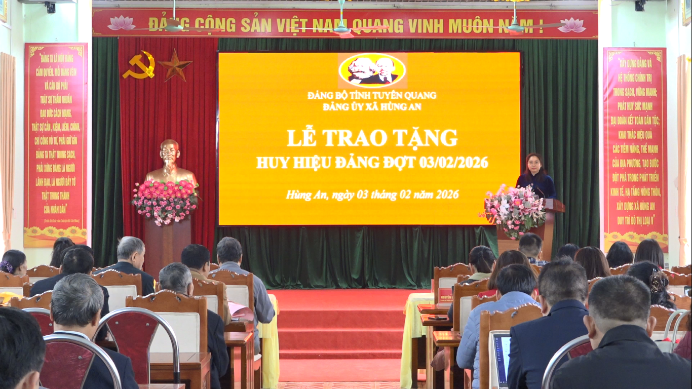 Phát biểu tại buổi lễ, đồng chí Nguyễn Thùy Linh, Bí thư Đảng ủy, Chủ tịch HĐND xã đã chúc mừng các đồng chí được nhận huy hiệu đảng, đây là phần thưởng cao quý của Đảng tặng cho đảng viên có nhiều thành tích đóng góp trong sự nghiệp đấu tranh giải phóng dân tộc, xây dựng bảo vệ tổ quốc. Đồng thời mong các đồng chí đảng viên tiếp tục tiên phòng gương mẫu có nhiều đóng góp hơn nữa với chính quyền địa phương; luôn là tấm gương sáng cho thế hệ trẻ học tập và noi theo để xây dựng các Chi bộ, Đảng bộ xã Hùng An trong sạch vững mạnh./.