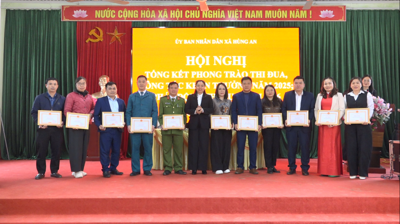 Trong năm xã đã tặng giấy khen cho 03 tập thể, 08 cá nhân trong phong trào toàn dân bảo vệ an ninh Tổ quốc năm 2025; 07 tập thể, 14 cá nhân trong phong trào thi đua yêu nước giai đoạn 2020–2025; và 05 cá nhân có thành tích xuất sắc trong cao điểm tấn công trấn áp tội phạm.