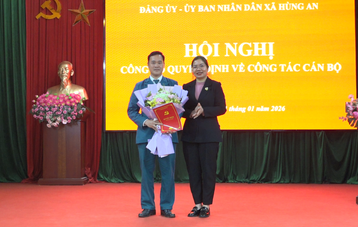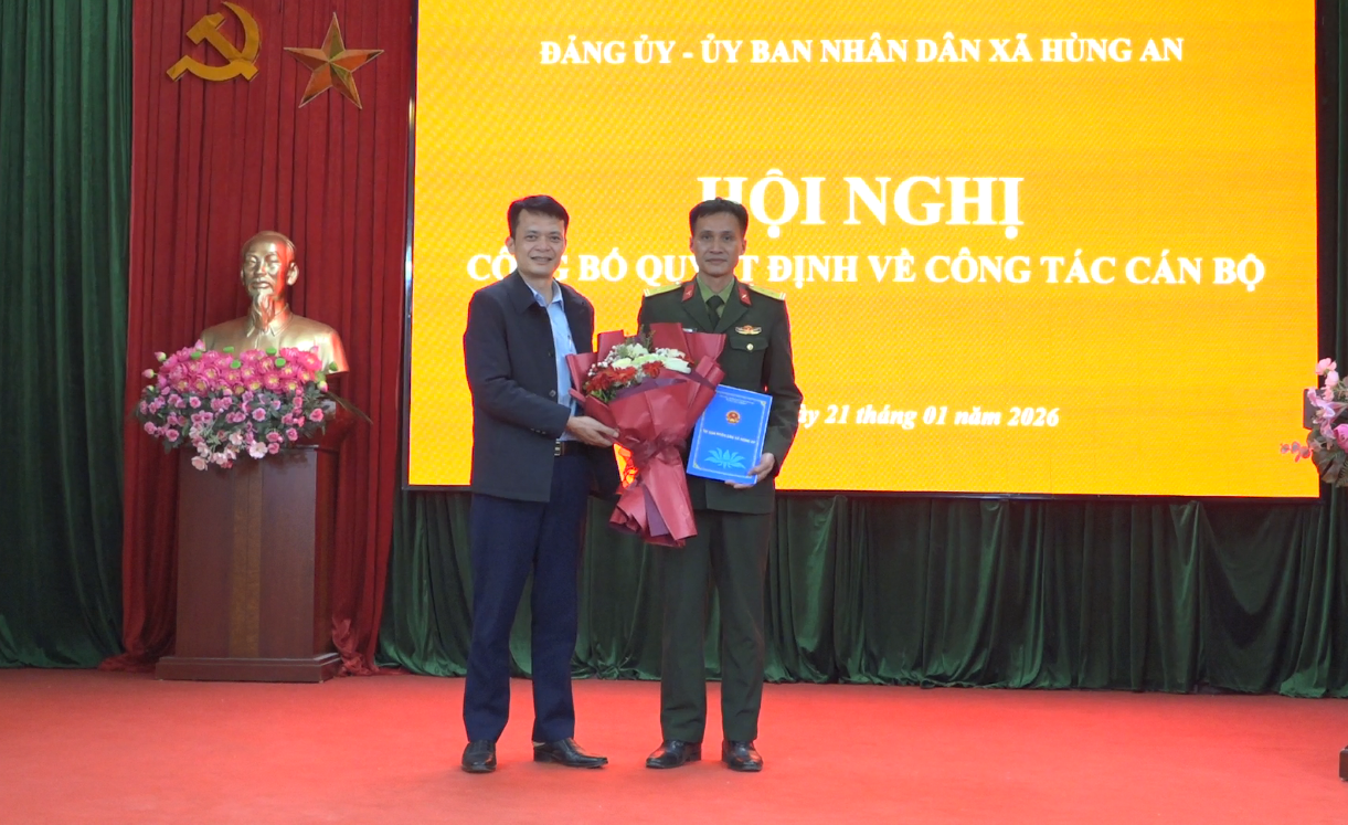 Theo đó, lãnh đạo Ban xây dựng đảng và Phòng văn hóa – xã hội xã Hùng An đã công bố các Quyết định của Quân khu 2 về điều động bổ nhiệm Trung tá Phạm Minh Đông, Trợ lý Phòng Tham mưu – Kế hoạch, Đoàn KT-QP 313 giữ chức Chỉ huy trưởng Ban Chỉ huy Quân sự xã Hùng An; Quyết định của BTV Tỉnh ủy tỉnh Tuyên Quang chỉ định đồng chí Phạm Minh Đông, Chỉ huy trưởng Ban Chỉ huy quân sự xã Hùng An tham gia BCH Đảng bộ, BTV Đảng ủy xã Hùng An, nhiệm kỳ 2025 – 2030; Quyết định của Chủ tịch UBND tỉnh Tuyên Quang về miễn nhiệm chức vụ Chỉ huy trưởng xã Hùng An của ông Hoàng Văn Đích và bổ nhiệm giữ chức Phó Chỉ huy trưởng Ban chỉ huy quân sự xã Hùng An, nhiệm kỳ 2025 - 2030.